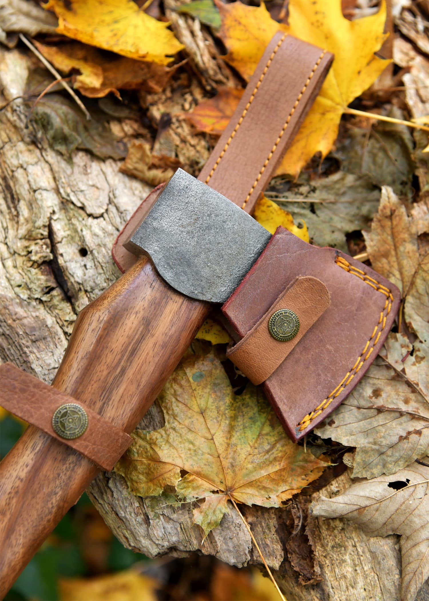 This small axe is perfectly suited for all kinds of outdoor activities such as felling, limbing or wood-splitting works. The axe comes with a handy leather sheath with belt loop.