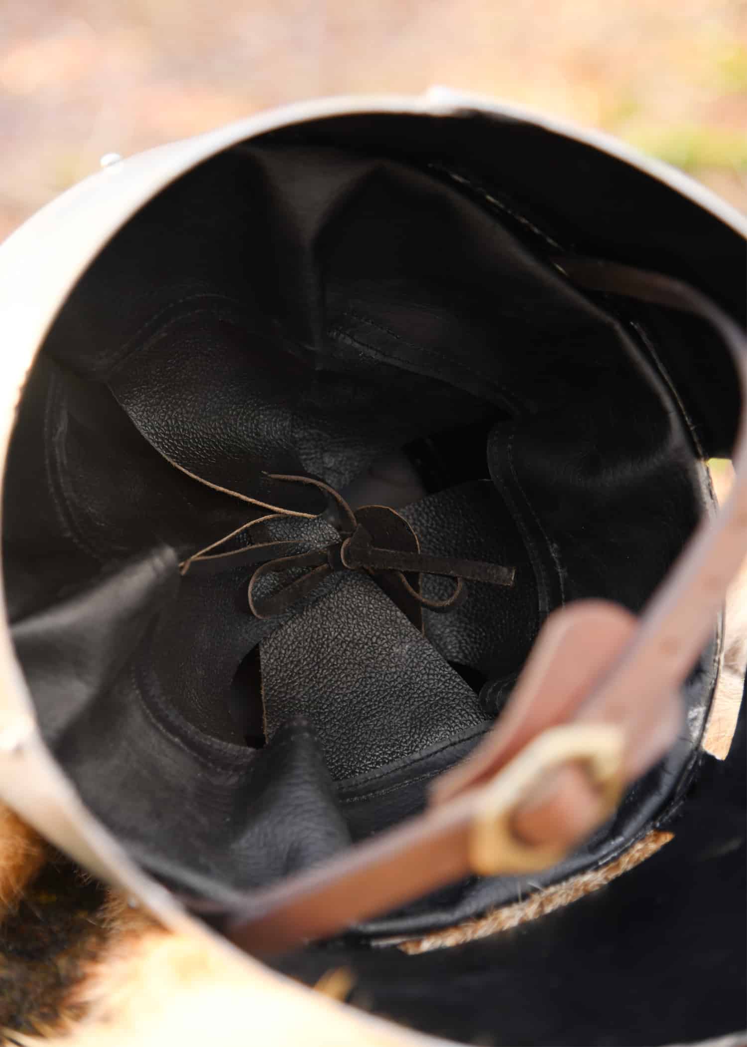 – Inclusief comfortabele leren voering en kinband met gesp