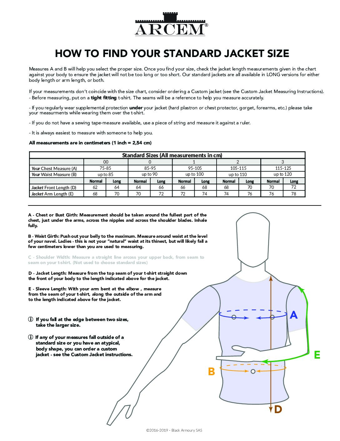 - We can produce each size as a “Long” version, which adds length of the jacket torso and the sleeves.(+ 20€)