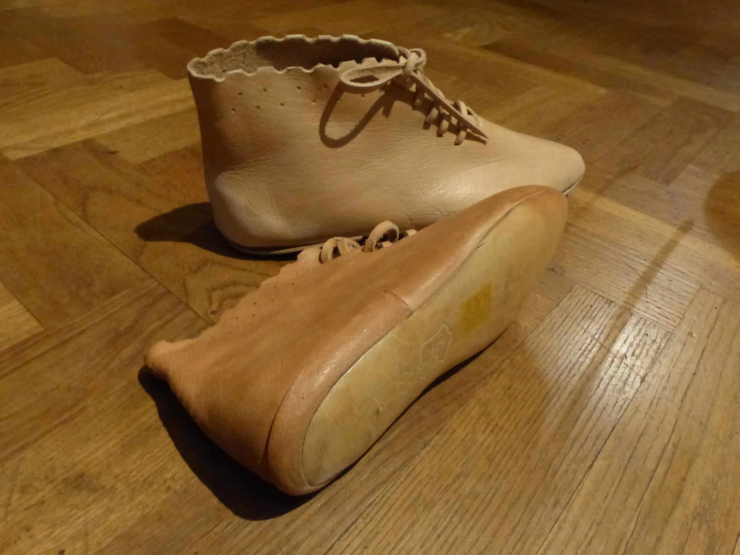 Deze middeleeuwse keerschoenen zijn gebaseerd op het maken van schoenen in de middeleeuwen, waarbij de schoenen geheel binnenstebuiten aan elkaar gezet werden en dan gekeerd. Dergelijke schoenen zijn op diverse plaatsen gevonden.