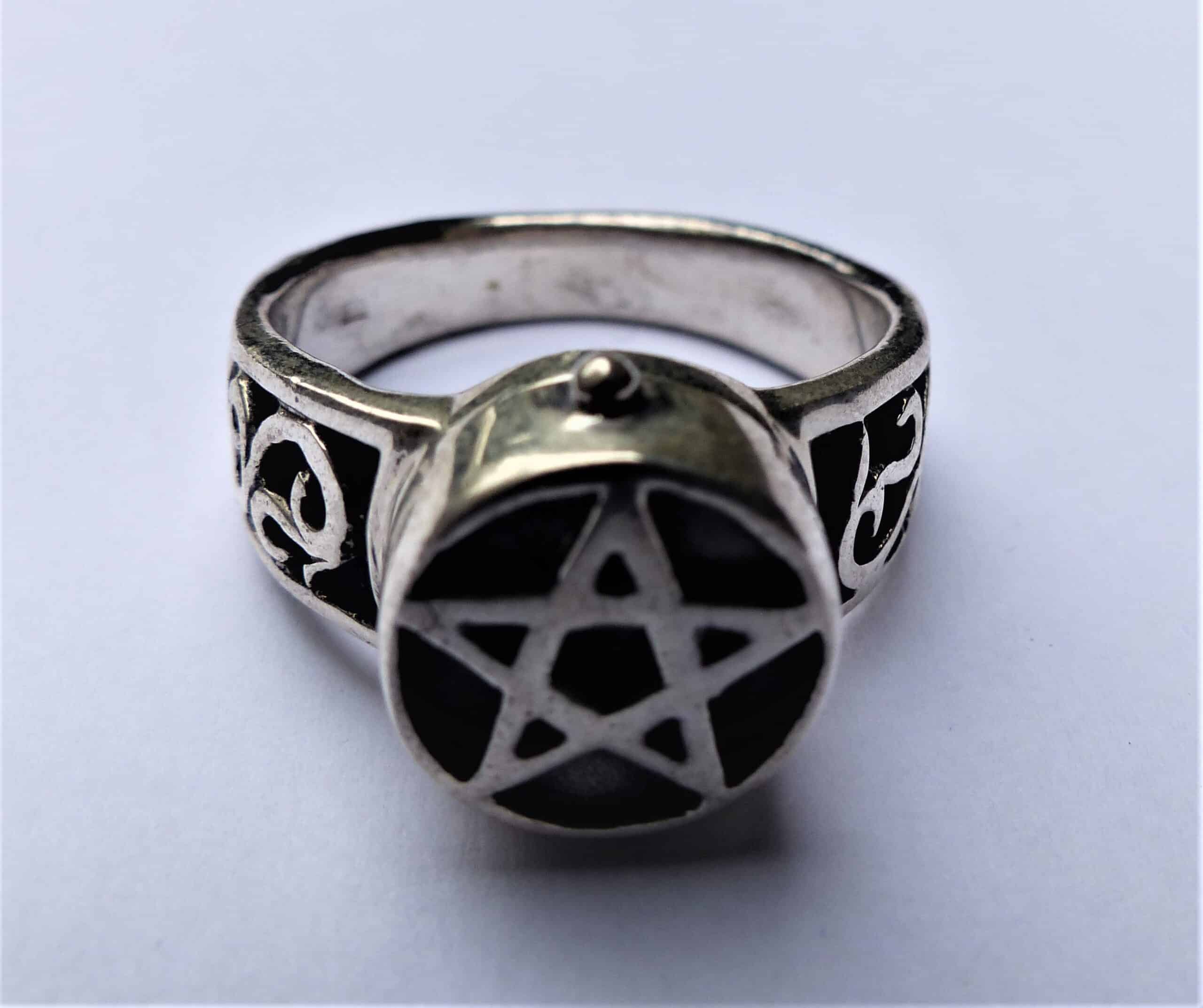 Deze pentagramring heeft een doosje dat je open kunt maken, zodat je er iets in kunt bewaren.