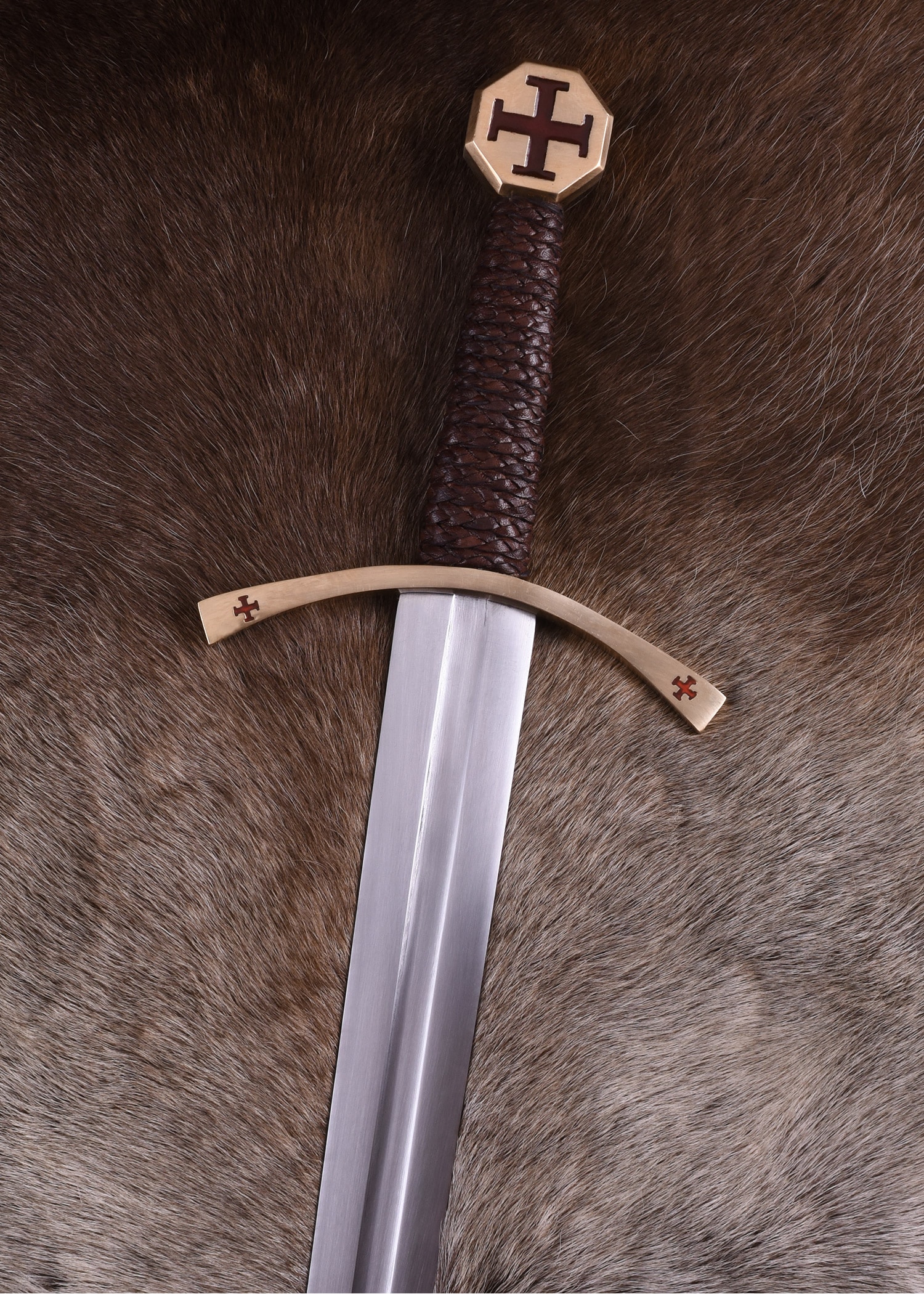 De hilt van dit decoratieve zwaard is gemaakt van messing. Dit templier zwaard is een mooi onderdeel om je historische of fantasie kostuum voor een evenement af te maken, of hang het zwaard mooi aan je muur!